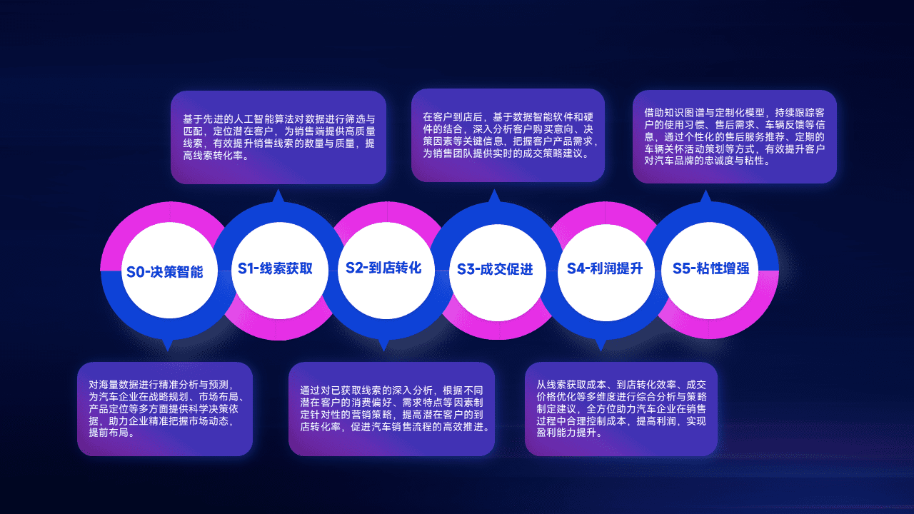 通过拓宽潜在客户来源、、、、优化线索分配并提高到店转化率,,,,以增强销售效率。。。。同时,,,利用线索数据不断优化分析模型,,有效提升转化率,,扩大营销影响力。。。